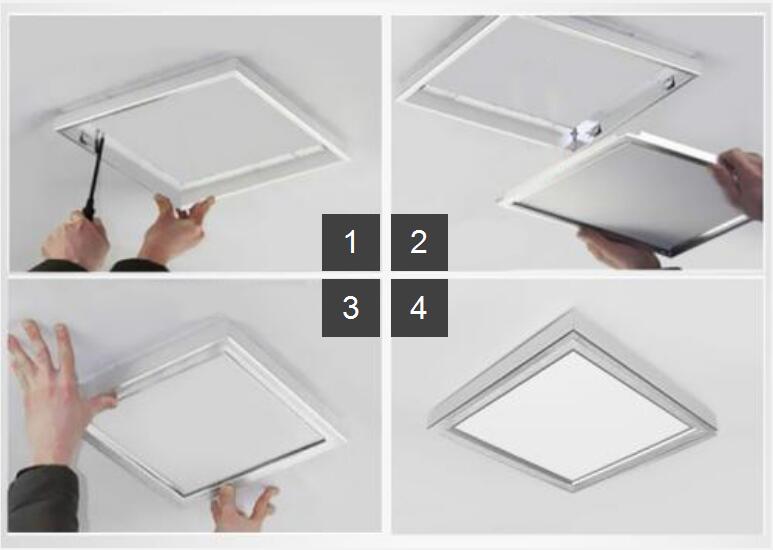 Ceiling type. The suspended ceiling is a solid wall structure. First install the ceiling frame on the solid wall. Then lock the panel light in the ceiling frame. (As shown below)