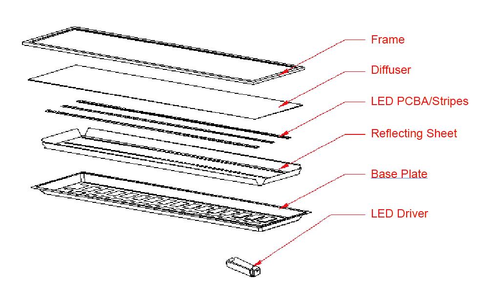 1. The straight down panel lamp has high luminous efficiency. The light emitted by LED light source is directly illuminated by high transmittance lens and diffusion plate to reduce the transmission link of light source in other media and the light loss in the structure design of lamps. The light efficiency of the whole lamp is high.